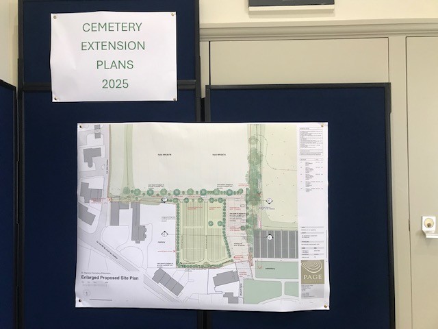 The Parish has recently prepared some draft plans for an extension to the existing Parish Church Cemetery. These are now available for viewing in the hallway at the Public Hall during normal office hours. If you have any queries please do get in touch by emailing [email protected]